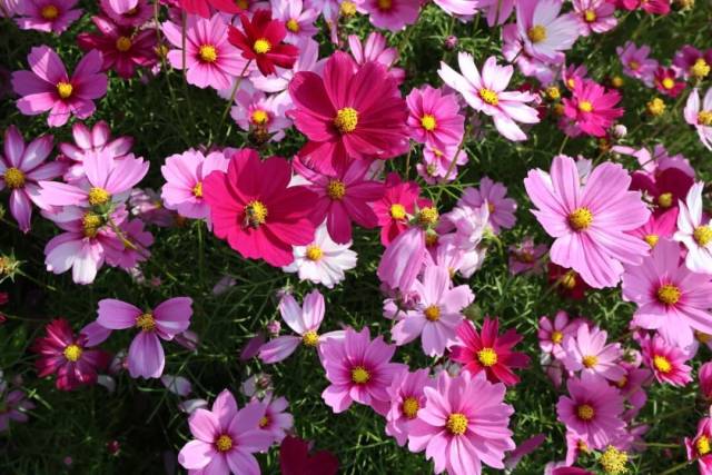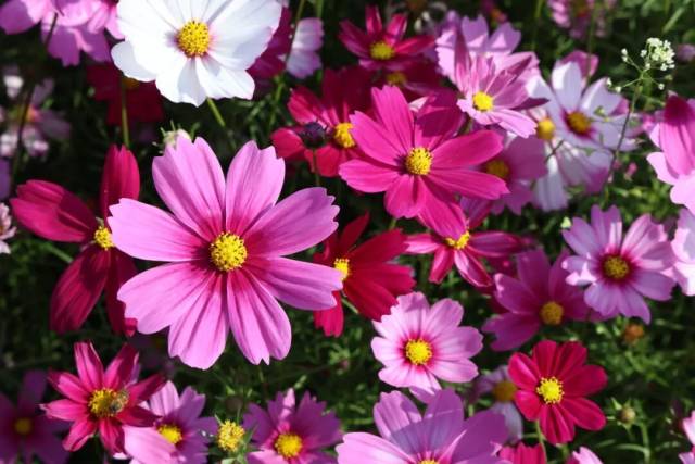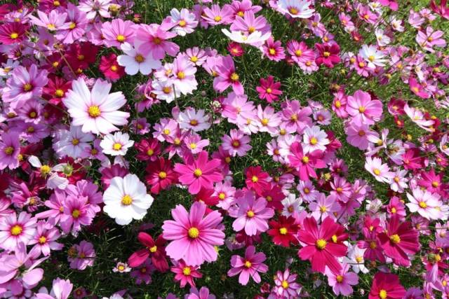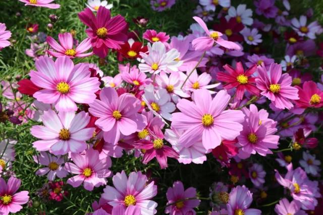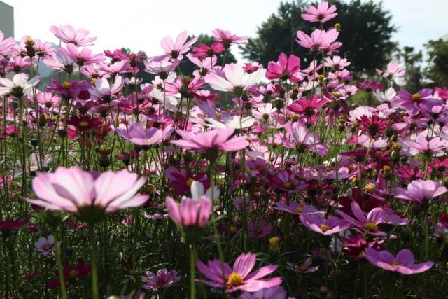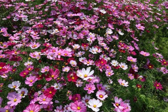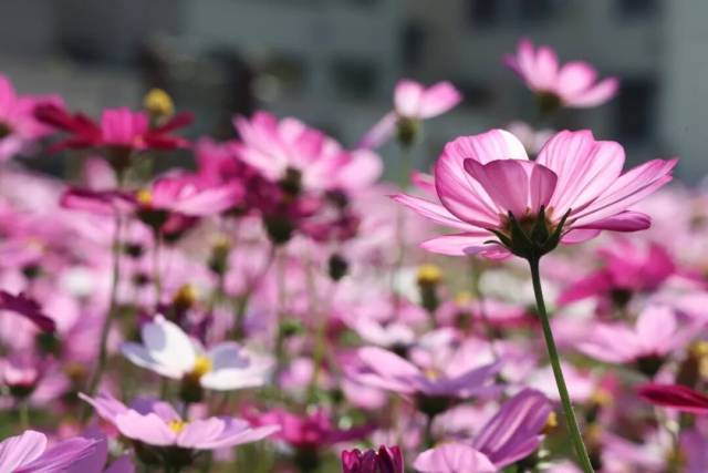 此时此刻,连片的格桑花沿着田埂肆意铺展,顺着坡地自然漫开,粉的似锦绣朝霞,白的如飘落云絮,紫的闪光宝石,细瘦的茎秆顶着轻盈的花盘,在微风中轻轻摇曳,泛起层层温柔的花浪。