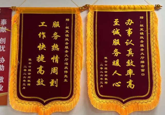 近日,板芙镇政务服务中心收到陈士口腔诊所陈先生专程送来的锦旗致谢。