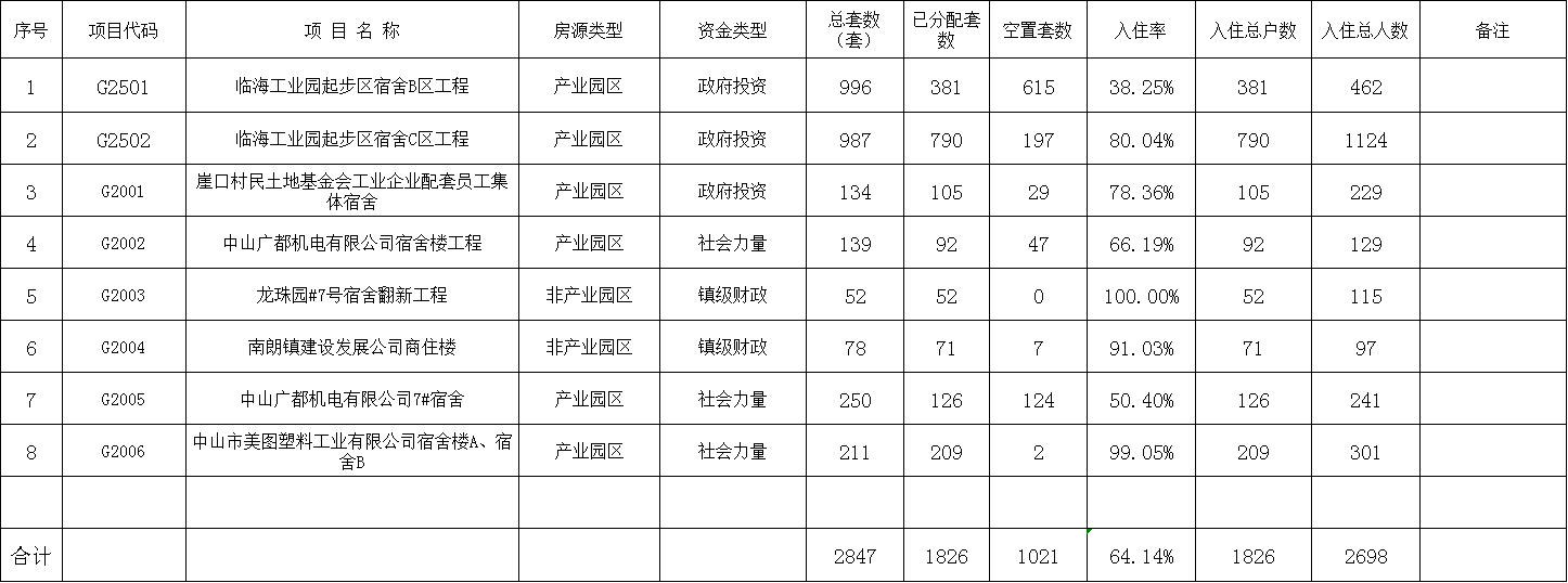 翠亨新区(含南朗街道镇)公租房管理情况备案表(2021年12月)