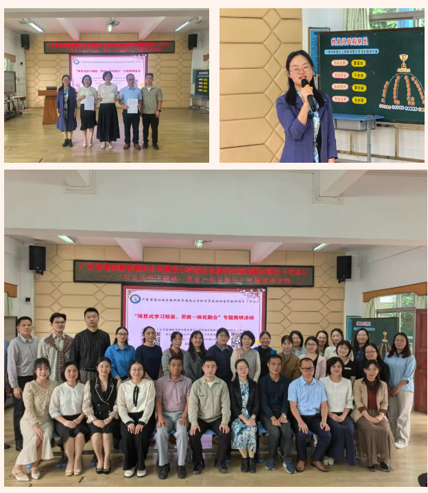 10月29日,东凤镇在小沥小学举办了一场以“项目式学习赋能,思政一体化融合”为主题的教研活动。本次活动同时也是对广东省基础教育教研体系建设小学综合实践活动学科教研项目(中山)的一次深入实践与探索。副镇长李泰杰、中山市教研室教研员林晓洁,镇团委及镇教体中心负责人、市项目组成员及各学校教师代表共同参加了此次活动。 课堂与成果:呈现育人新范式 活动紧扣“实践育人”的核心,多维度呈现教研成果。小沥小学老师黄倩芳执教《我是阅兵观察员》一课,引导学生围绕“九三阅兵”主题制定项目式学习活动方案。该课例以阅兵为思政载体,组织六年级学生通过小组合作与思维碰撞,自主探究方案设计,在提升实践规划能力的同时厚植家国情怀,生动体现了“思政融于实践”的理念。 随后,与会人员参观东凤镇中小学综合实践成果展。展区通过图文、实物等多种形式,呈现小沥小学以“九三阅兵”为主题的项目式学习路径,并集中展示了东凤镇各校在综合实践教育领域的优秀成果。由学生撰写的研究报告、制作的手工作品、记录的实践手册等,直观反映了各校在项目式学习与思政融合方面的扎实探索,得到与会嘉宾的充分肯定。 交流与探索:共享区域实践经验