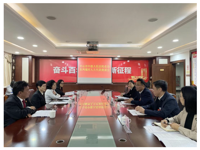 为广泛听取人大代表意见建议,及时改进完善法院工作,不断推动法院工作高质量发展,1月21日下午,中山市中级人民法院审判委员会专职委员何理带队到东凤镇走访市人大代表,就法院工作开展情况和代表意见建议进行深入交流。市人大代表、东凤镇党委书记邹小龙,市人大代表、镇人大主席刘志康,市人大代表易樱及镇人大办相关负责人参加座谈。