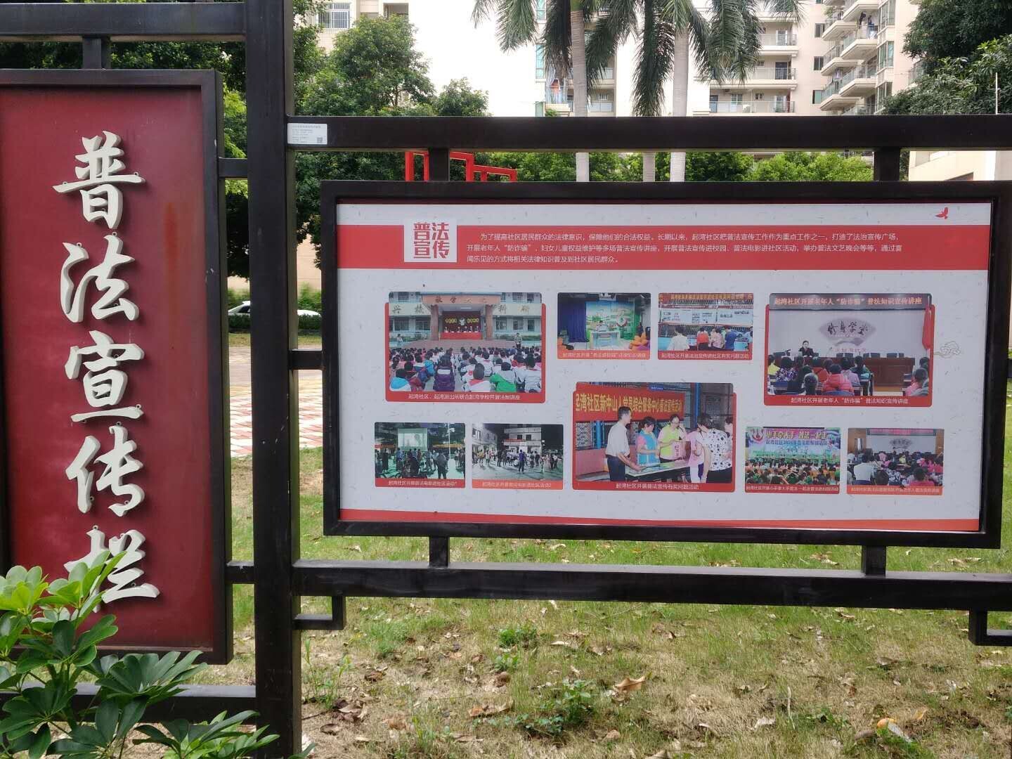 东区街道法治文化公园位东区月湾路月湾横街起湾文化广场旁,该公园为开放式,公园建有普法宣传标识,靠近公园外侧人行道有普法宣传栏。同时法治文化公园还依托起湾文化广场开展法律咨询、专题法治讲座,举办普法晚会等常规法治宣传教育,形成多元开放大众普法新格局。该公园所有设施设备由东区司法所和起湾社区共同管理与维护。