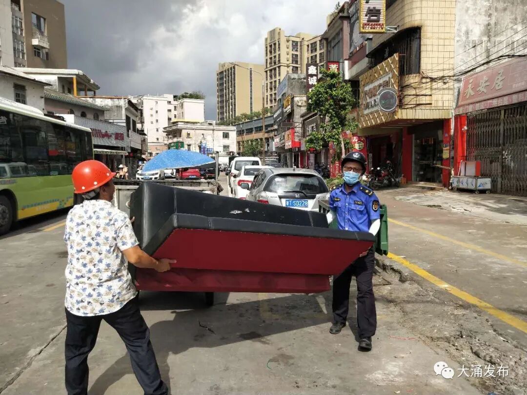 台风稍一停歇,唐达就指挥一班相对年轻的环卫工人冲锋一线,开着卡车,带着电锯上路清障。不到一天时间,大涌很多主干道路就恢复了正常的通车秩序。
