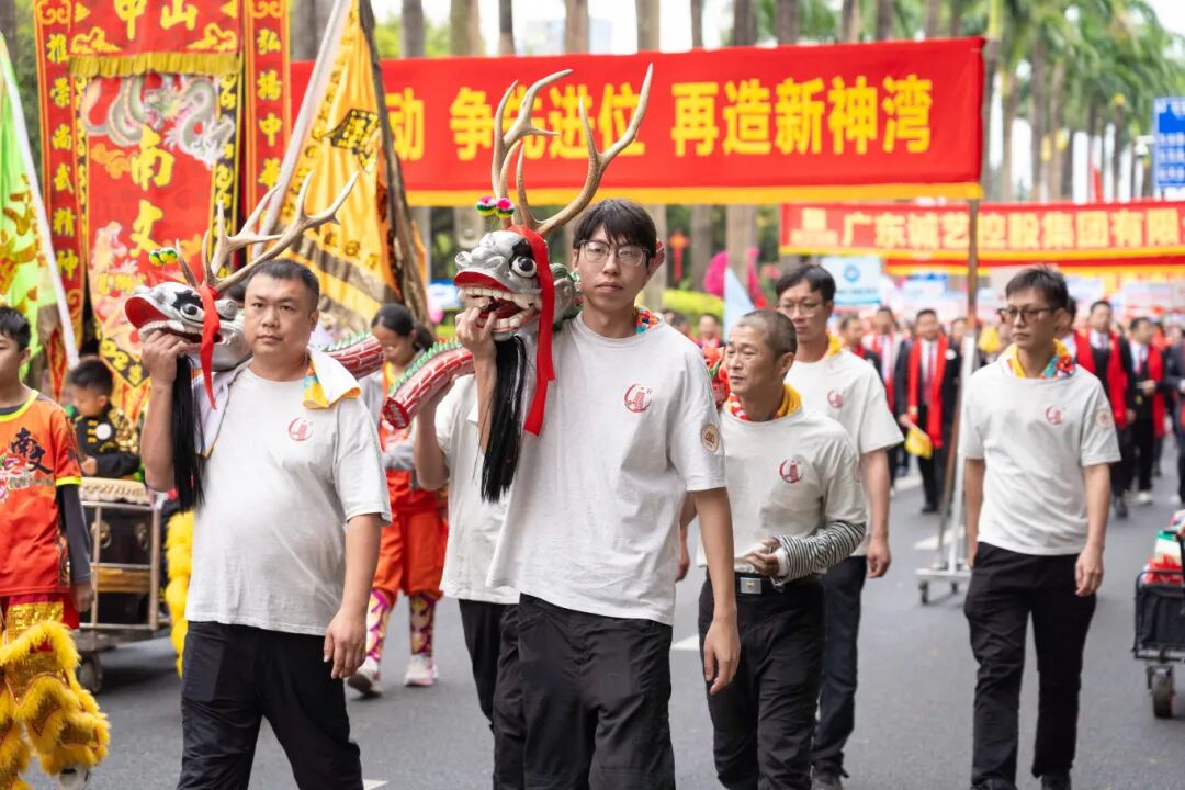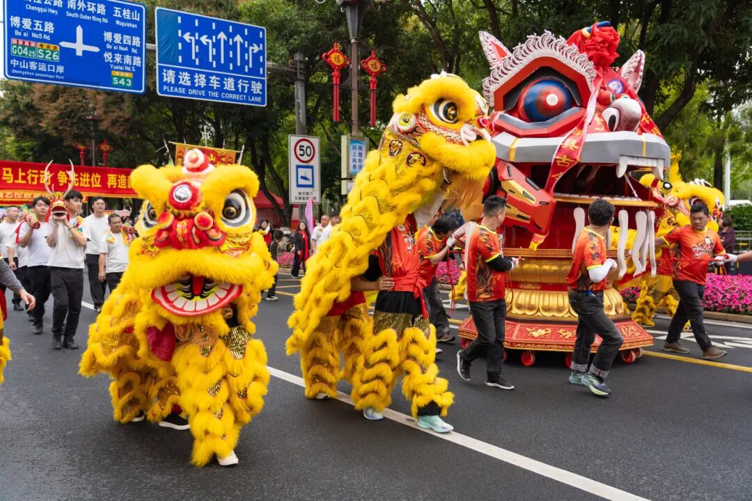 方阵中的巡游代表面带笑容,与木雕狮子头、醒狮、柴龙一同尽显昂扬风采,向沿途观众挥手致意、献上祝福,既彰显了“中国红木雕刻艺术之乡”的深厚底蕴,也展现了大涌人民奋发向上的精神风貌,成为巡游队伍中一道独具特色的风景线。