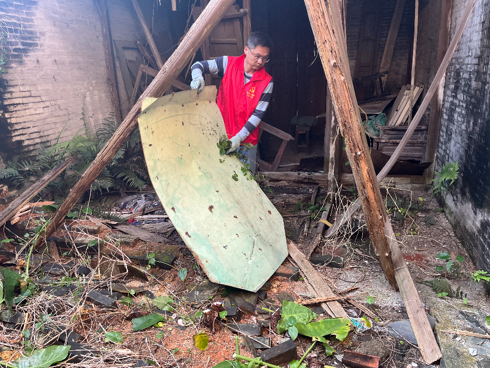 在攻坚行动中,党员干部分工协作、靶向发力,对各类卫生隐患展开“清零”行动。面对长期杂草丛生的闲置地,他们铲除杂草、割除芋秆,连嵌在泥土里的芋头根都彻底清除,杜绝藏污纳垢的“温床”;针对仅容一人通过的狭窄小巷,党员干部排成“接力队”,合力清运垃圾,攻克每一处卫生死角。同步推进的入户排查与消杀工作同样扎实高效:党员干部以网格为单位分组行动,全覆盖深入群众家中、出租屋、厂企、商铺等场所,逐户叩门排查、翻盆倒罐清积水,并加强宣传引导。遇到住户无人在家的情况,他们灵活采取夜间走访、错峰入户的方式,以“不漏一户、不落一人”的坚守,把健康防线织到群众身边。