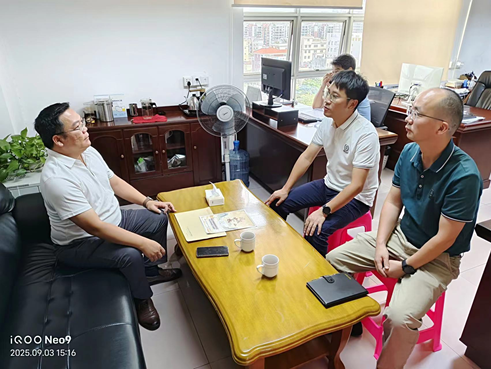 9月2日,市供销社党组成员、理事会副主任武江涛带领合作发展科及市瑞丰贸易公司有关同志,与到访的中山报业传媒股份有限公司总经理助理、市广告协会会长肖良津一行,就在中山书展期间举办供销集市事宜进行交流。