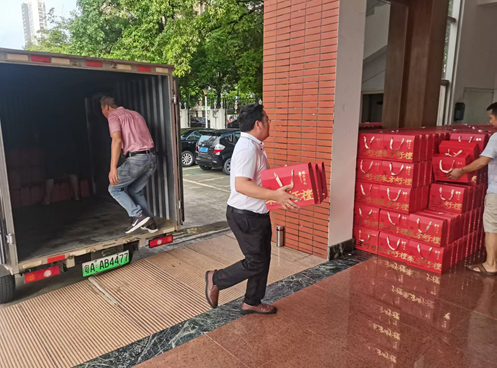 9月12日,大涌供销社联合市瑞丰贸易公司,为当地党政办配送“供销纯牛奶”等中秋节慰问品。