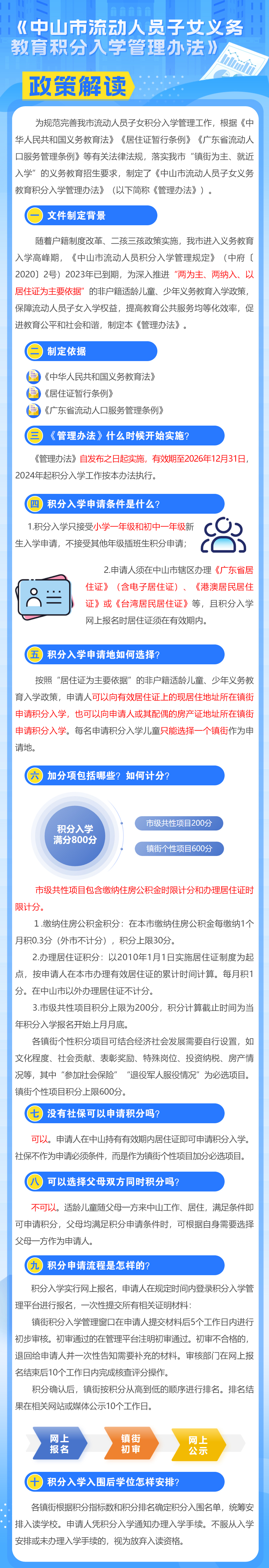 【图解】《中山市流动人员子女义务教育积分入学管理办法》