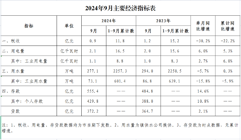 古镇镇2024年9月主要经济指标表