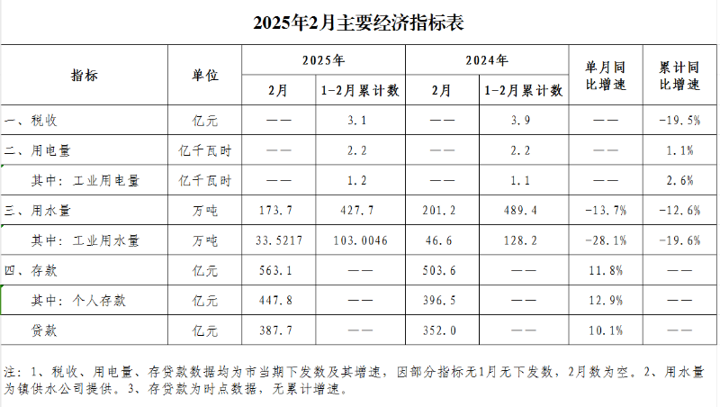 古镇镇2025年2月主要经济指标表