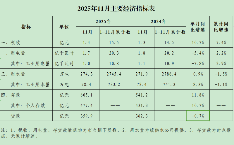 古镇镇2025年11月主要经济指标表