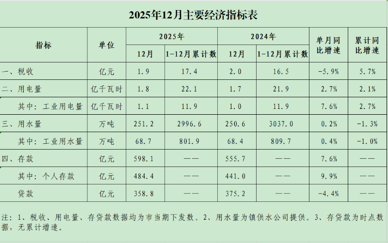 古镇镇2025年12月主要经济指标表