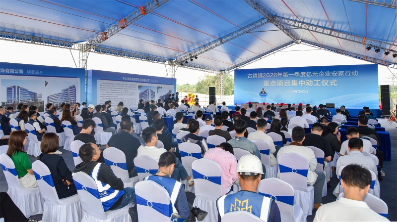 3月2日,古镇镇举行2026年第一季亿元企业安家行动重点项目集中动工仪式,认真贯彻落实省、市高质量发展大会精神,以“起步即冲刺、开局即决战”的奋斗姿态,吹响“开门红”的冲锋号角,奋力在“十五五”新征程上跑出高质量发展加速度。市政协副主席叶新雄、镇党委书记薛治国,镇党委副书记、镇长黄贤龙,市发改局二级调研员陈光钵,市工业和信息化局副局长朱俊樸,镇领导文庆华、吴国森、梁俊杰、胡蝶辉,以及相关部门负责人、企业代表参加。