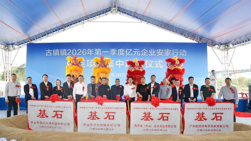 据悉,2026年古镇镇一季度新动开重大项目16个,总投资31亿元。今天集中动工的项目共4个,总投资超9.1亿元。 此次动工项目涵盖LED智慧照明、光伏科技、智能电源等领域,项目从洽谈签约到开工建设平均用时不到3个月,实现“拿地即动工”,跑出了项目落地“加速度”,将为古镇镇照明灯饰产业智能化、绿色化、融合化发展注入新动能。 黄贤龙在致辞中表示,近年来,古镇始终坚持实体经济为本、制造业当家,以头号力度推进亿元企业“安家、回家、建新家”。今年是“十五五”开局之年,也是古镇镇攻坚突破年。镇党委、政府聚焦照明灯饰主导产业,计划推出200亩工业用地,靶向招引一批优质项目,持续加大企业服务力度,培育打造一批优质照明灯饰品牌企业,支持企业走专精特新发展之路,不断做大做强,加快推动照明灯饰产业向价值链高端迈进。 思中达 骐鸿 丹丰 星明浩