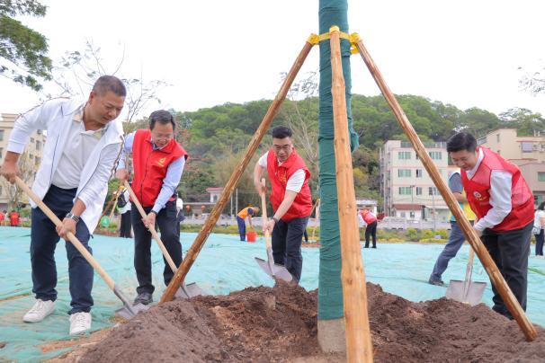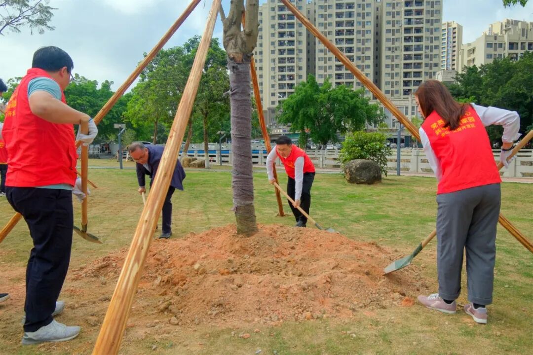 当天,以“侨心同行,共植新绿”为主题的植树活动暨“侨爱林”揭牌仪式在海滨社区黎村公园开展。市侨联领导、区领导、侨胞志愿者、公资集团志愿者、海滨社区干部群众等约100人齐聚一堂,共同栽植凤凰木、红花紫荆、紫花风铃木、黄花风铃木、乌桕等观花赏叶树种共103株。