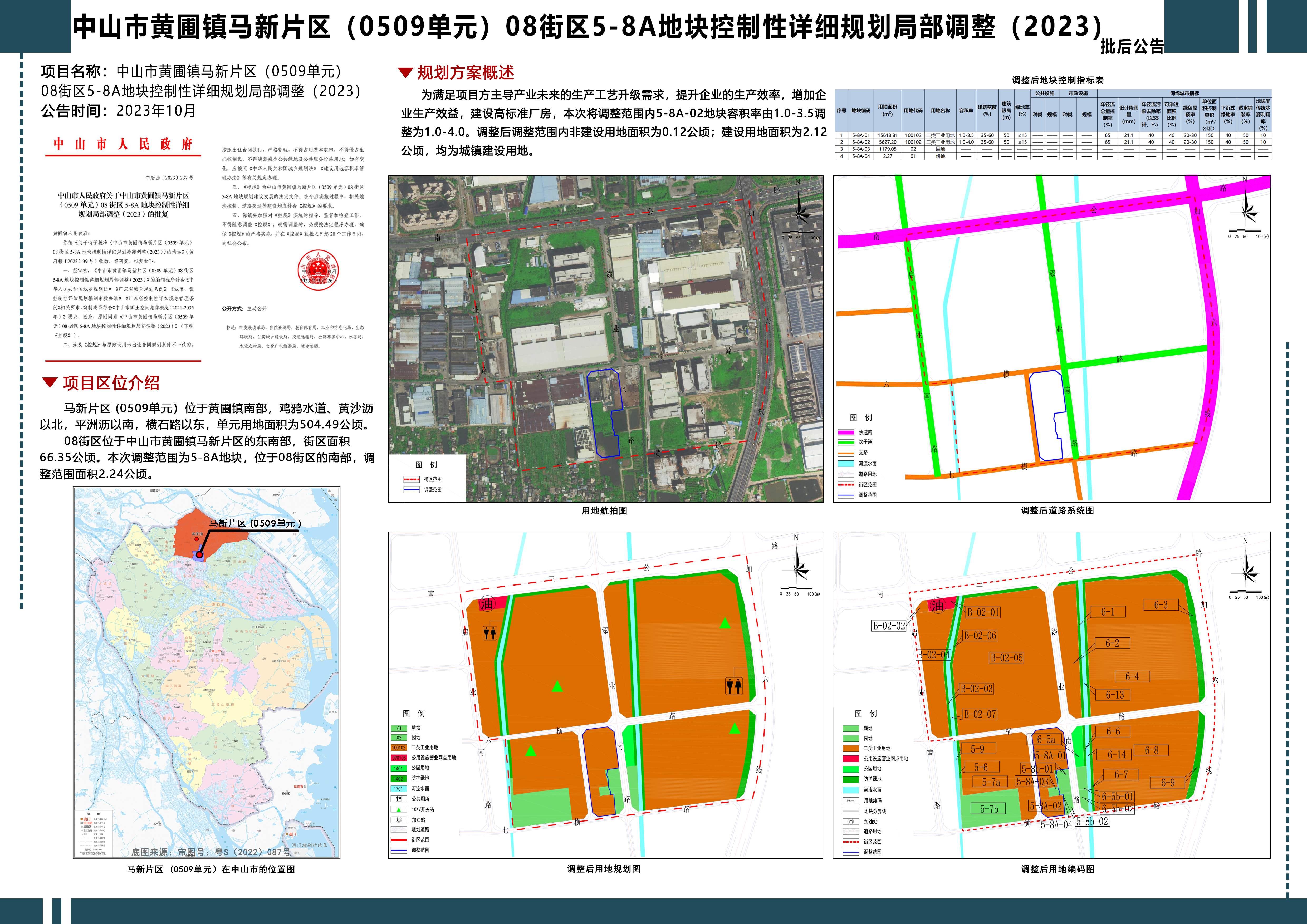 附件:《中山市黄圃镇马新片区(0509单元)08街区5-8A地块控制性详细规划局部调整(2023)》批后公告
