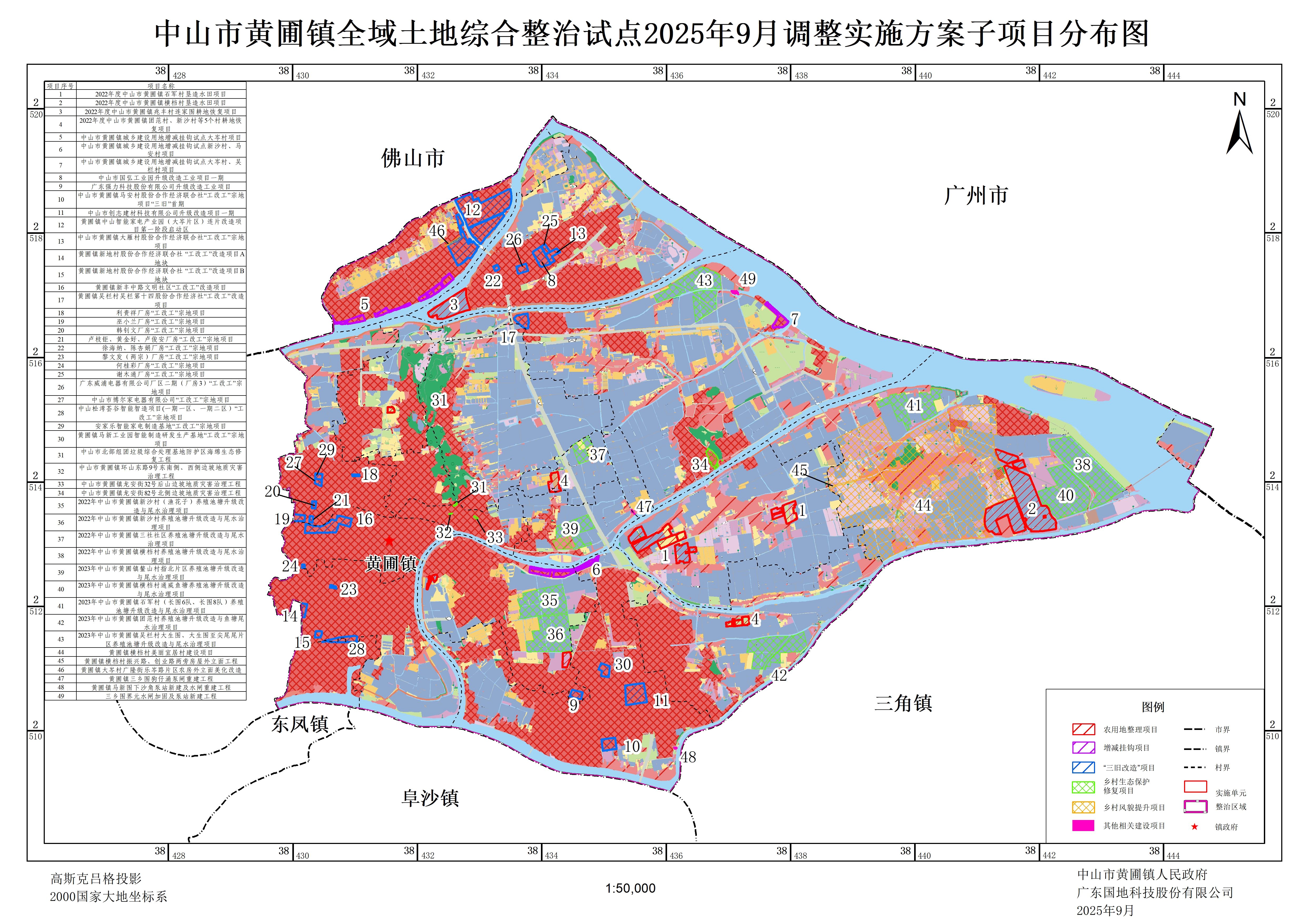 附图:中山市黄圃镇全域土地综合整治试点2025年9月调整实施方案-子项目分布图
