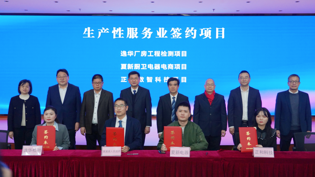 生产性服务业项目涵盖厂房工程检测、电商、数智科技、物流等多个领域,为黄圃产业升级提供有力支持,活动现场共有5个生产性服务业项目进行了签约。