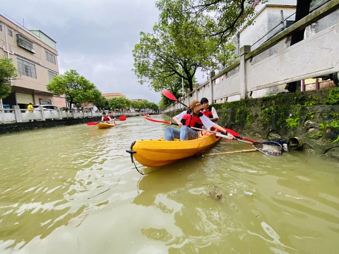 20名大学生青年组成的“河小青”服务队,在吴栏村良涌开展水上保洁。志愿者们手持网兜、垃圾袋等清理工具,互相配合,对河道上的纸盒、塑料、泡沫、水瓶、废纸等漂浮物进行捡拾清理,让河道焕然一新。