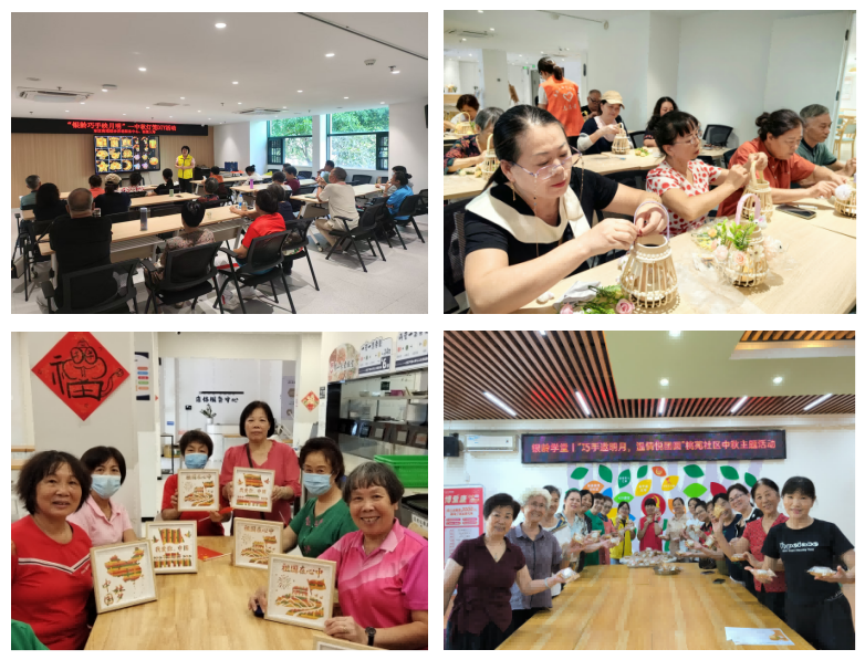 双节之际,东区街道依托“颐养东区”养老服务阵地开展长者庆节活动。其中,东区街道综合养老服务中心联动泰康人寿保险有限责任公司广东中山中心支公司,举办“银龄巧手映月明”中秋灯笼手作活动,长者在组装骨架、粘贴装饰时重温儿时记忆,既练动手能力,又沉浸式感受传统花灯文化;新鳌岭社区居家养老服务站联合卫生服务站开启“月圆家国梦・银龄颂华章”活动,以高血压防治讲堂、中秋知识竞答、爱国竹编画送健康温情;桃苑社区居家养老服务站推出“巧手邀明月,冰皮‘悦’团圆”活动,长者亲手制月饼,品团圆甜意;长江三溪社区借爱国手势舞、中秋竞答、竹编画传家国情;竹苑社区伴红歌开展“盛世华诞,月映中华”竹编画手作,尽显“颐养东区”暖心温度。