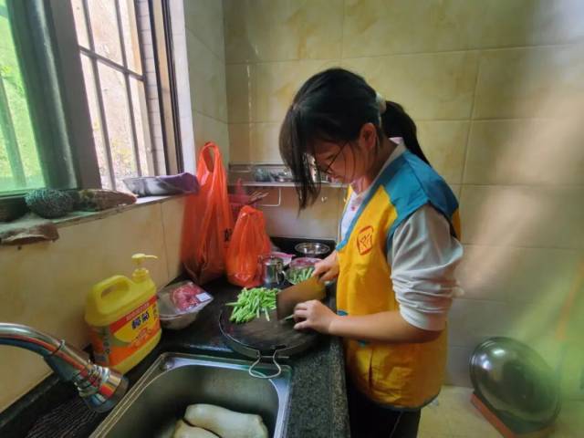 活动现场暖意融融,中山中专的师生志愿者们早早备齐新鲜食材,来到曾婆婆家中,分工协作、有条不紊地备菜、烹饪。一道道软烂易嚼、鲜香可口的家常菜接连出锅,不仅满足了老人的味蕾需求,更传递着贴心关怀。用餐环节,志愿者们主动分发餐食,与曾婆婆闲话家常,倾听她的故事,耐心询问需求与感受。现场氛围温馨和睦,欢声笑语不断,曾婆婆脸上洋溢着幸福笑容,连声为志愿者们的暖心服务点赞。