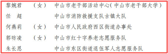 为表彰先进、树立榜样,进一步激励和动员全社会重视、支持和参与为老服务,营造敬老爱老助老社会氛围,根据全国老龄工作委员会办公室《关于开展2025年全国敬老爱老助老活动评选工作的通知》,经逐级推荐、审核和公示,现决定,授予北京市东城区东直门街道市民活动中心(党群活动中心)等1290个集体全国“敬老文明号”称号,授予高翔等1990名个人全国“敬老爱老助老模范人物”称号。 其中,中共中山市委老干部局宣传教育科、中山市沙溪镇圣狮村老人协会、中山市社会福利院(中山市养老服务指导中心)荣获全国“敬老文明号”称号,黎婉君、任 超、何燕莉、郭昉凌、朱长恩荣获全国“敬老爱老助老模范人物”称号。原文如下: