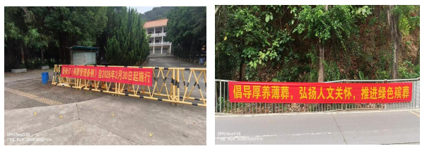 移风易俗是一项长期工程。三角镇着力构建线上线下结合、宣教服务并行的长效机制。线上依托镇、村两级微信公众号及时发布清明祭扫倡议书,推送移风易俗知识、新修订的《殡葬管理条例》等内容约30篇次,扩大宣传覆盖面,凝聚起移风易俗的强大合力。线下依托镇村新时代文明实践中心(站)、政务服务中心、综合养老服务中心等窗口与阵地,将文明理念融入日常服务与活动,累计在殡葬服务机构、各山体重点区域悬挂宣传横幅20余条。通过持续努力,喜事新办、丧事简办、文明祭扫逐渐成为社会共识和群众自觉。