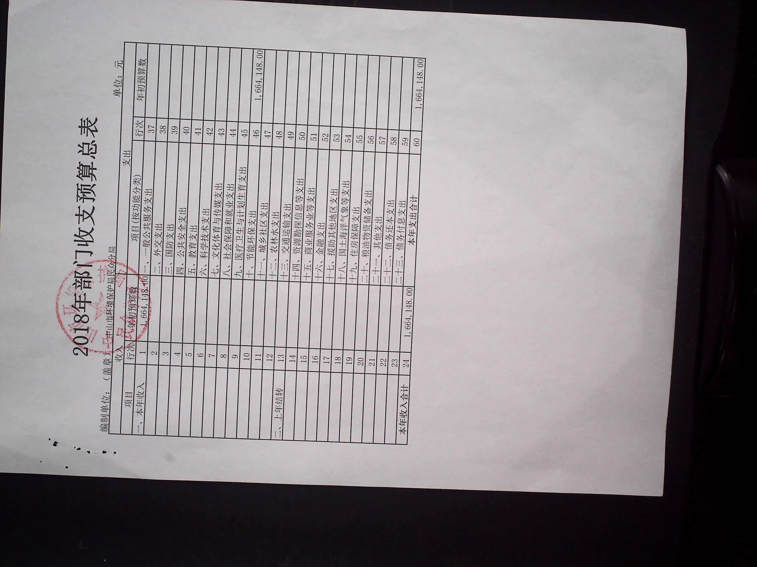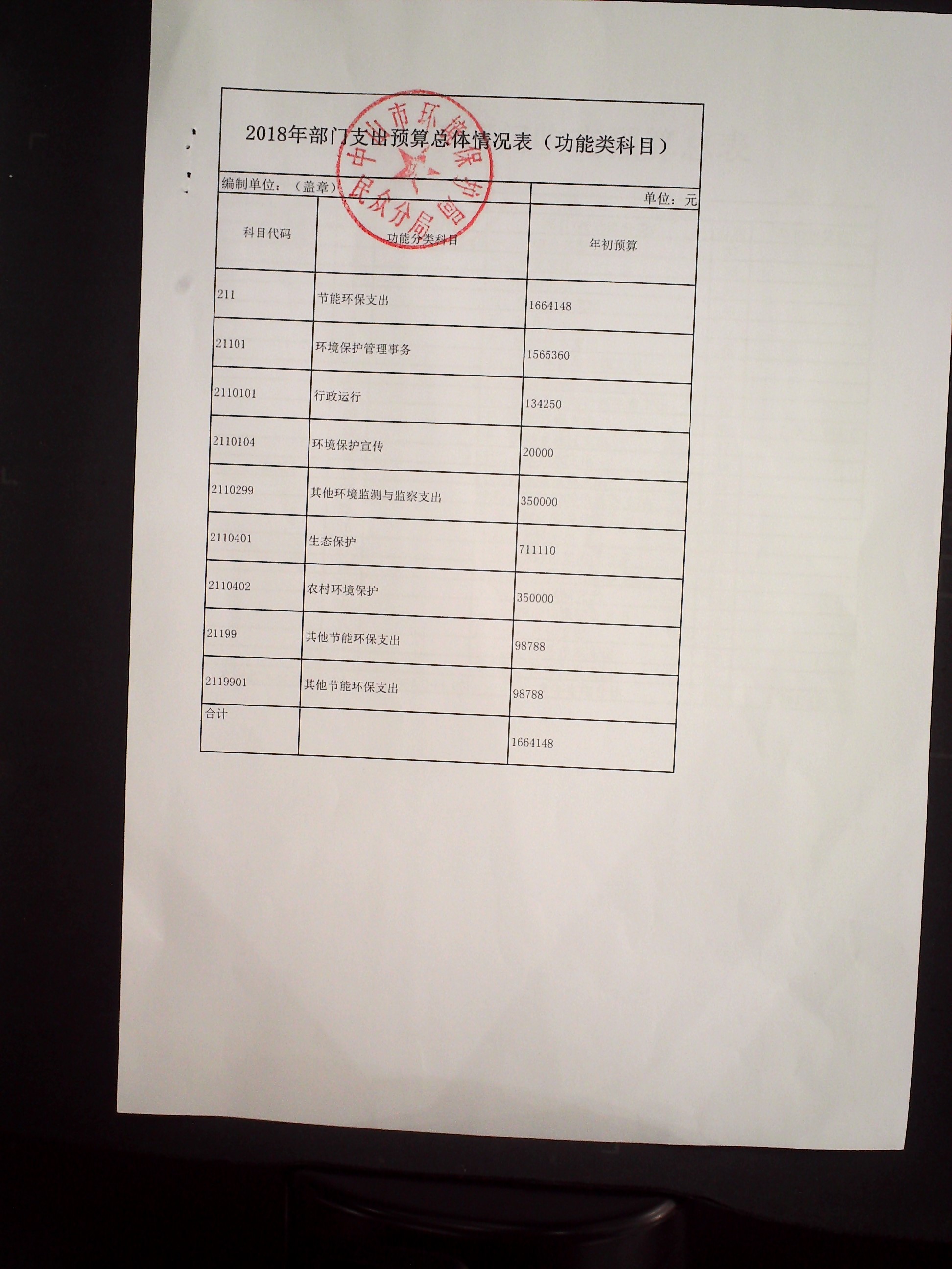 2018年民众环保分局预算公开