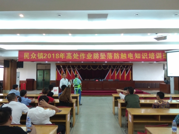 为进一步做好我镇安全生产工作,遏制和防范高处坠落安全事故发生,提高工人对防高空坠落及防触电安全意识和技能。6月21日下午,民众镇在镇政府六楼会议室开展了高出作业防坠落防触电知识培训班,镇内建筑施工企业、农民自建房、私人建筑工地、户外高处广告架设、空调室外机安装企业等生产经营单位的负责人及高处作业人员共50余人参加了培训。此次培训班邀请专家彭吉祥进行授课。