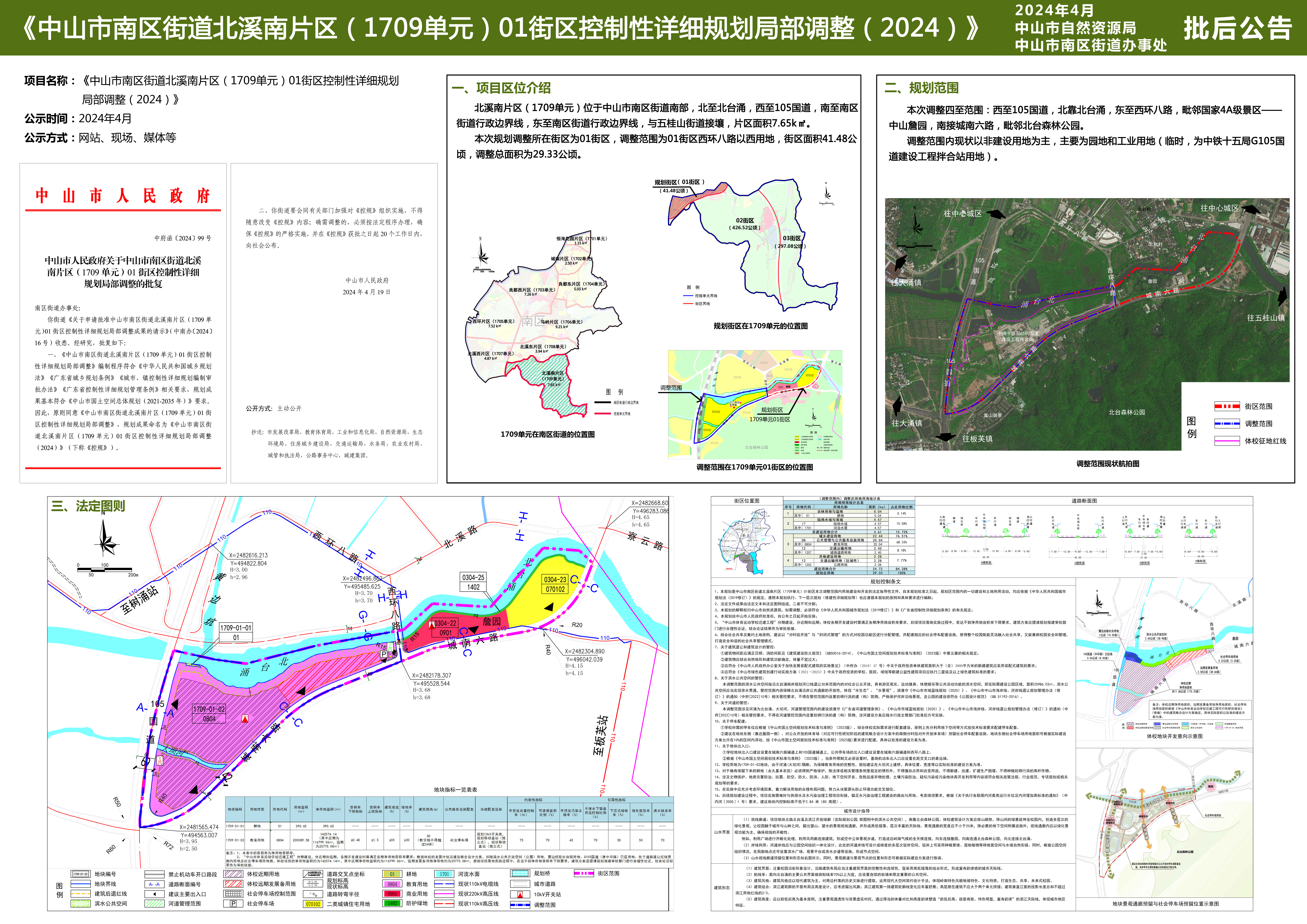 附件:《中山市南区街道北溪南片区(1709单元)01街区控制性详细规划局部调整(2024)》批后公告