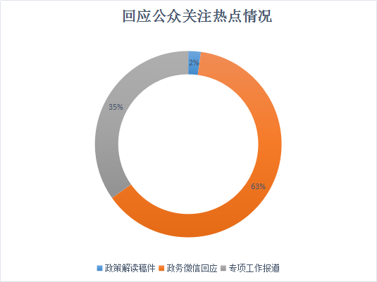 (五)回应公众关注热点情况。在回应解读的渠道方式上,政策解读稿件发布2篇,政务微信回应事件58次,政务网站发布环境治理、扫黑除恶等专项工作报道32篇(表4)。