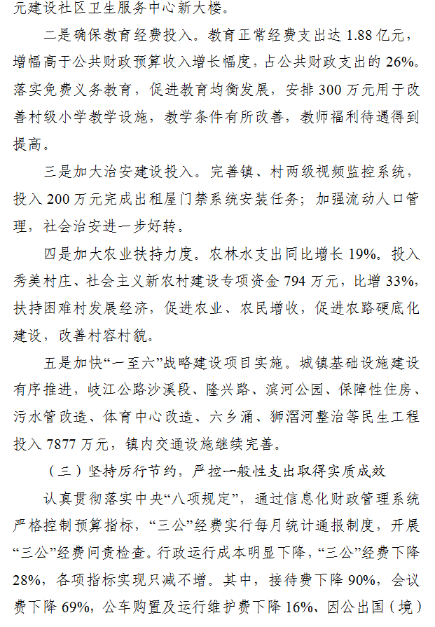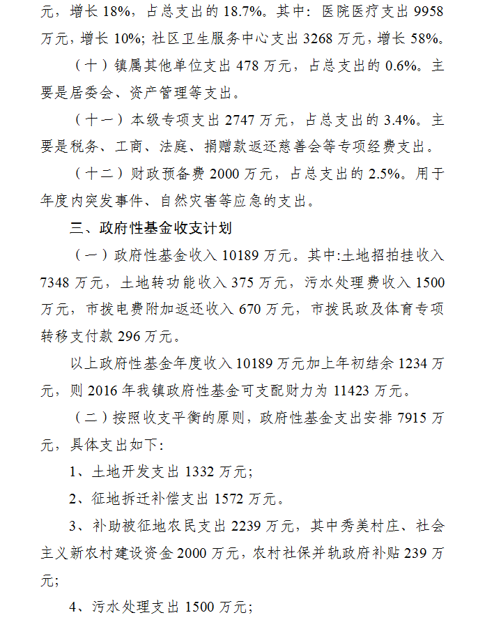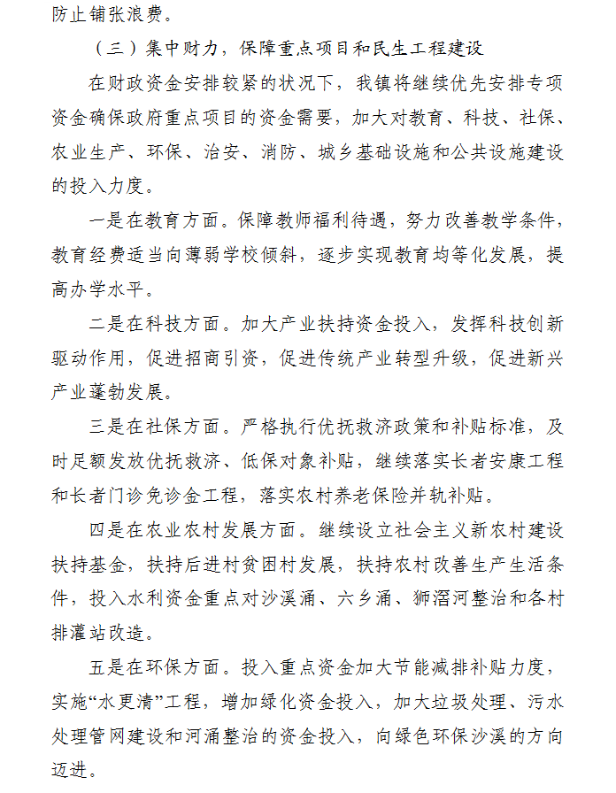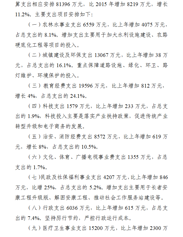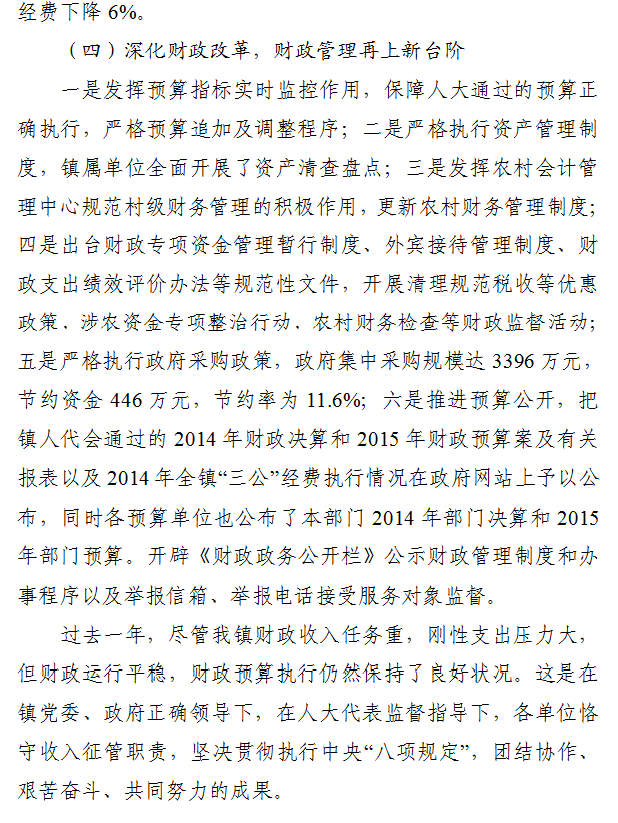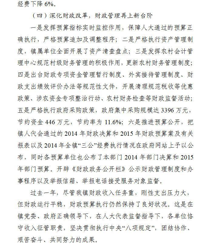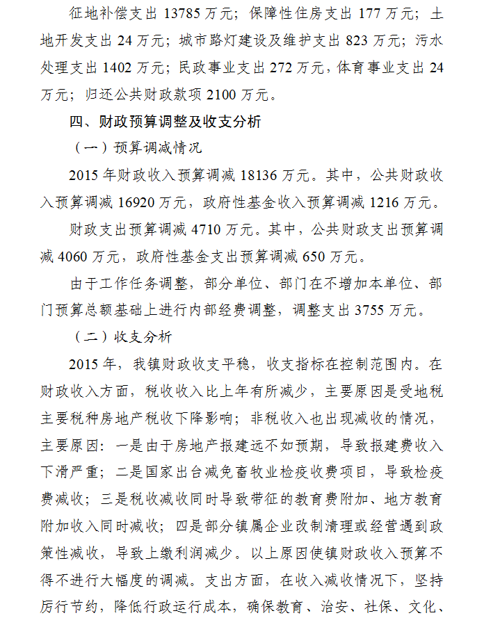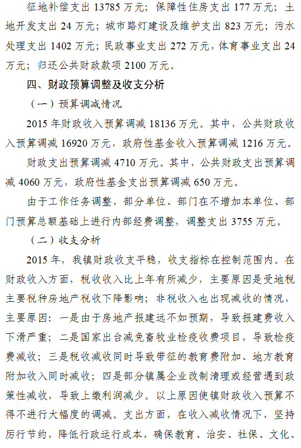 沙溪镇2015年预算执行情况和2016人大预算草案报告