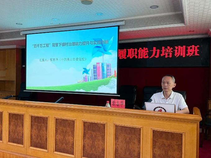 中共佛山市委党校科研处副主任黎喜华围绕《“百千万工程”背景下镇村治理能力提升与实践创新》,从政策逻辑、实践路径、创新方法三个维度,详细讲解了镇村在落实“百千万工程”中如何破解治理难题、提升精细化水平,并分享了佛山市镇村治理的先进经验。