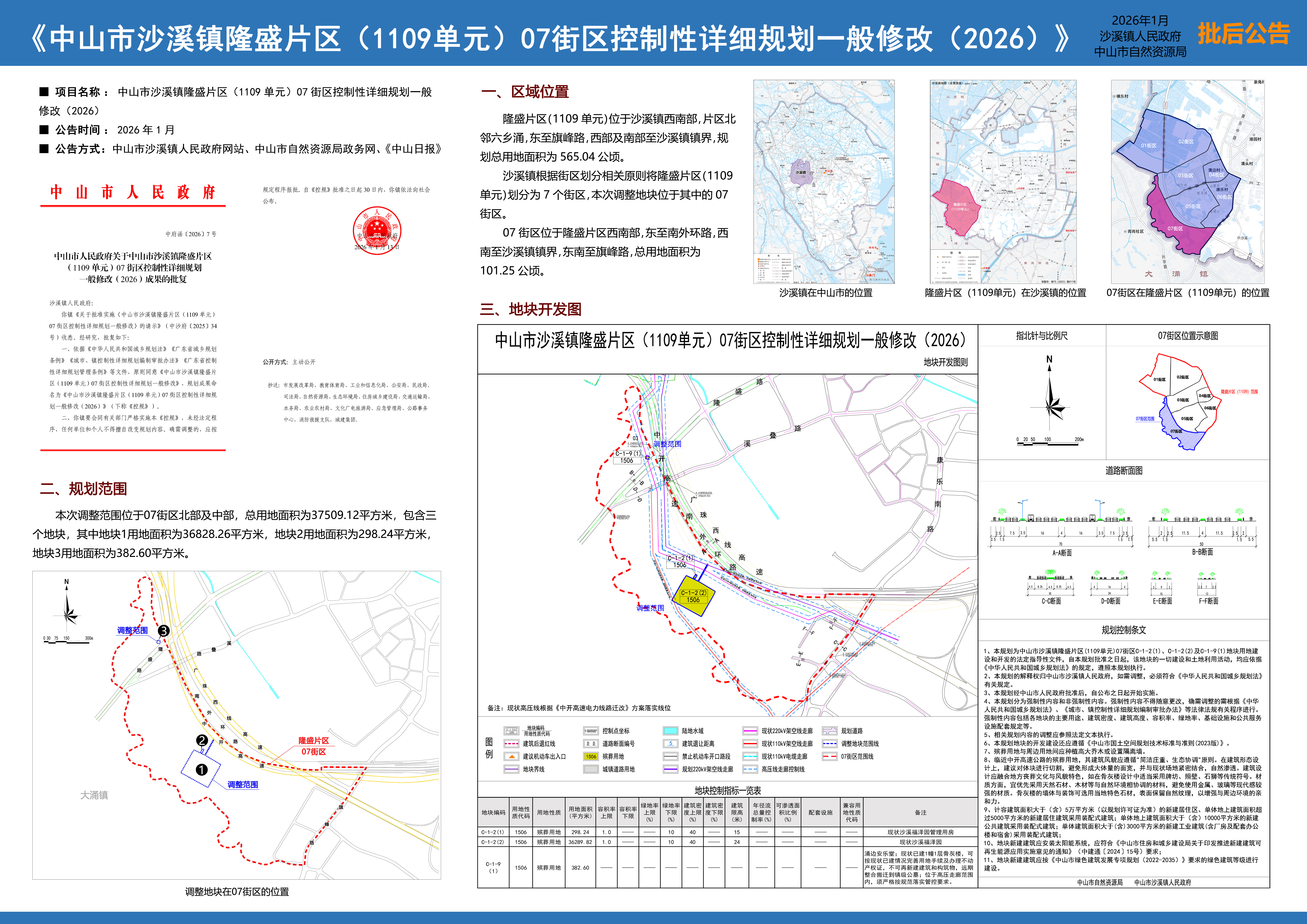 附件1:《中山市沙溪镇隆盛片区(1109单元)07街区控制性详细规划一般修改(2026)》批后公告