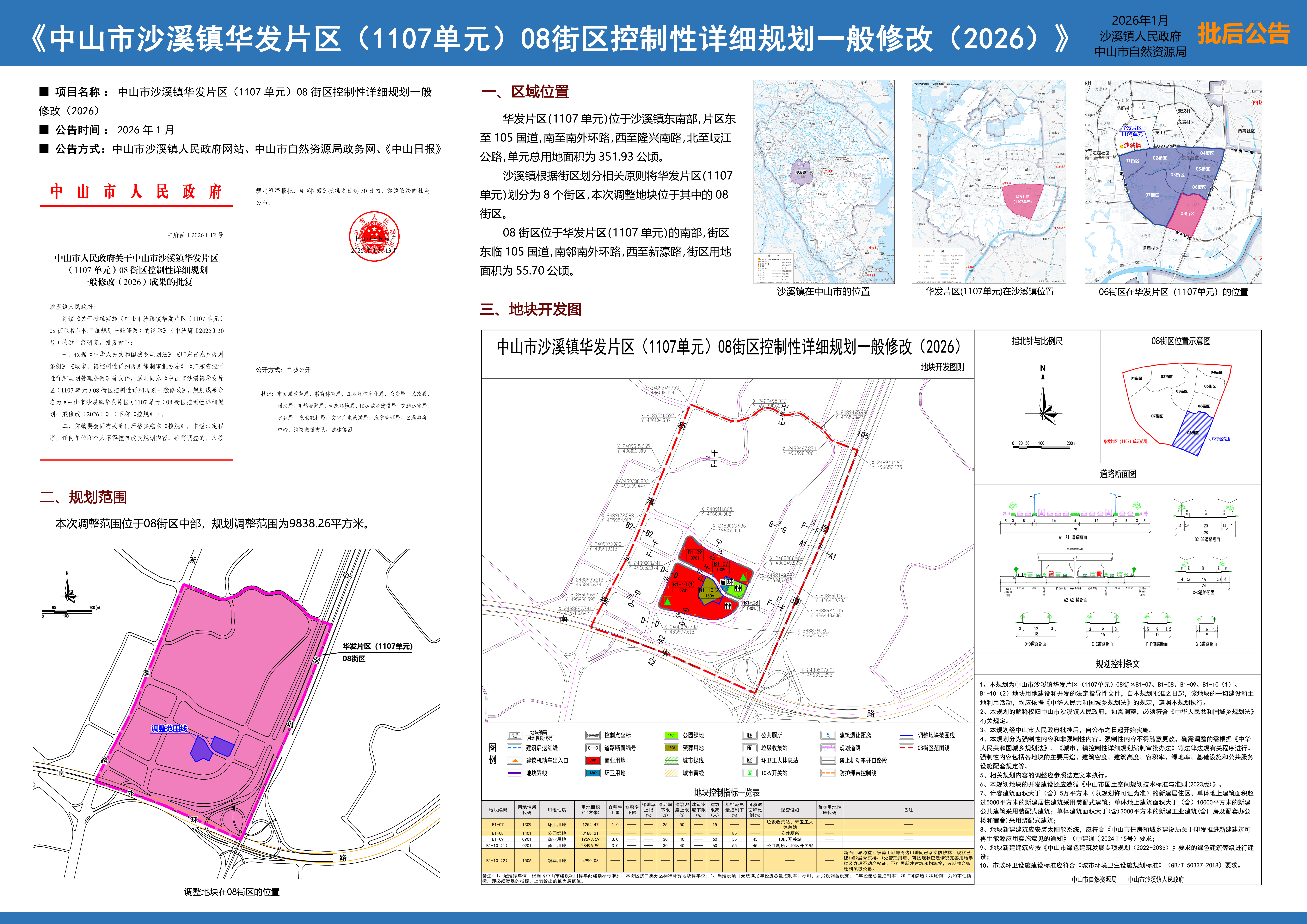 附件2:《中山市沙溪镇华发片区(1107单元)08街区控制性详细规划一般修改(2026)》批后公告