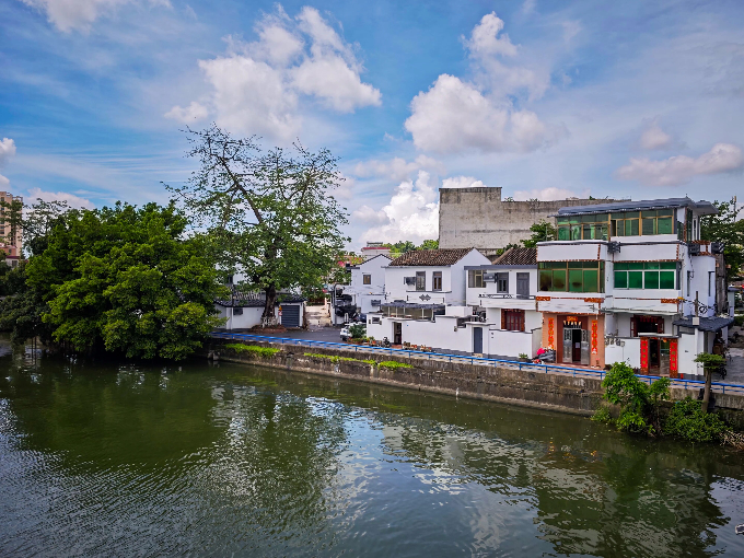 港园村:连片农房外墙经精心修缮与粉刷,重现往日风采,成为乡愁记忆的窗口。