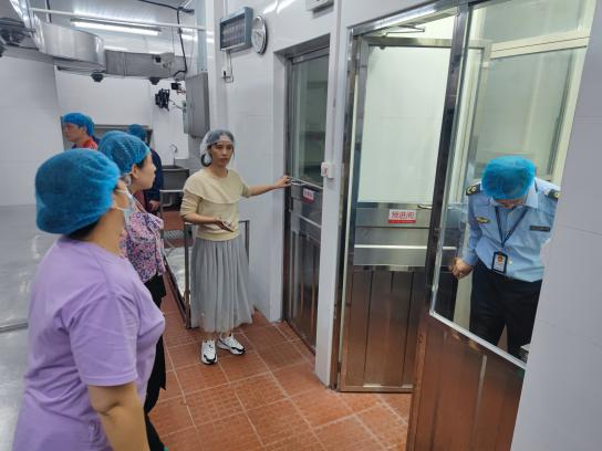 ▲镇党委副书记王瑾检查学校预进间及明厨亮灶情况。