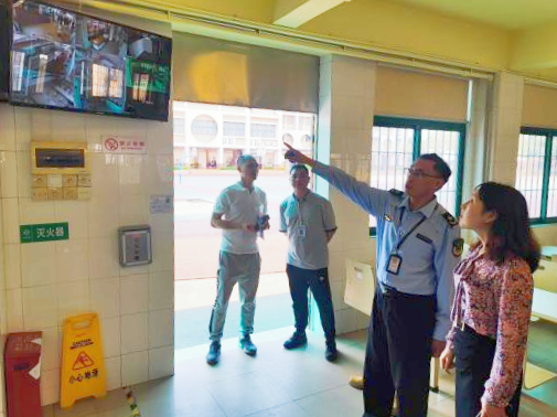 ▲执法人员检查学校“日管控、周排查、月调度”落实情况。