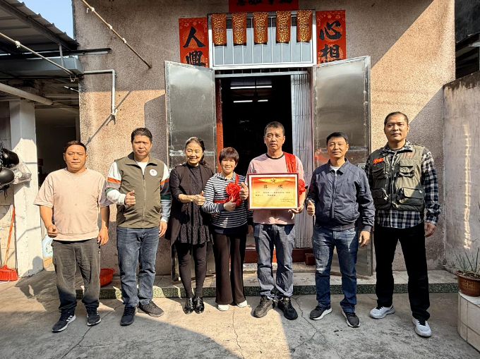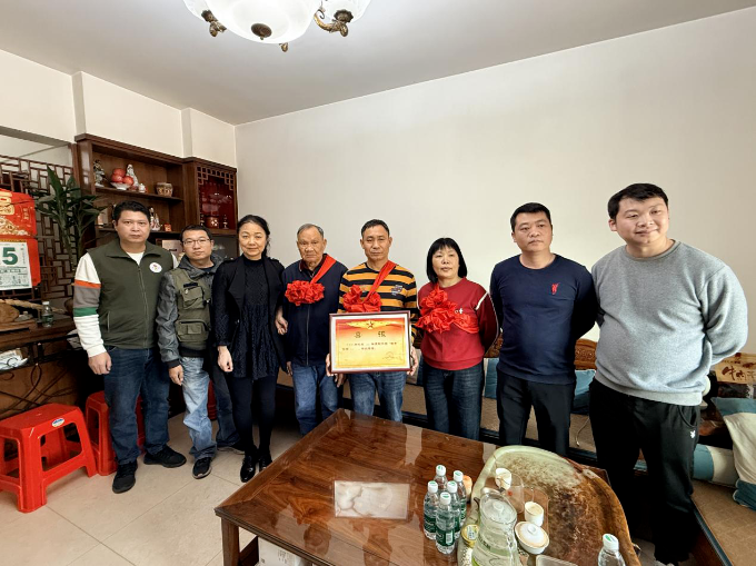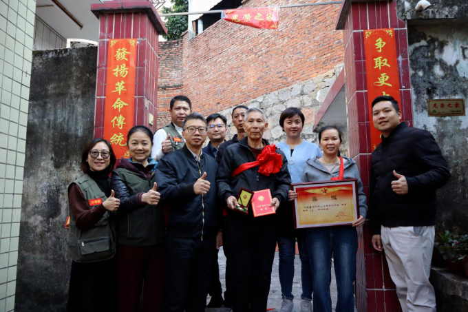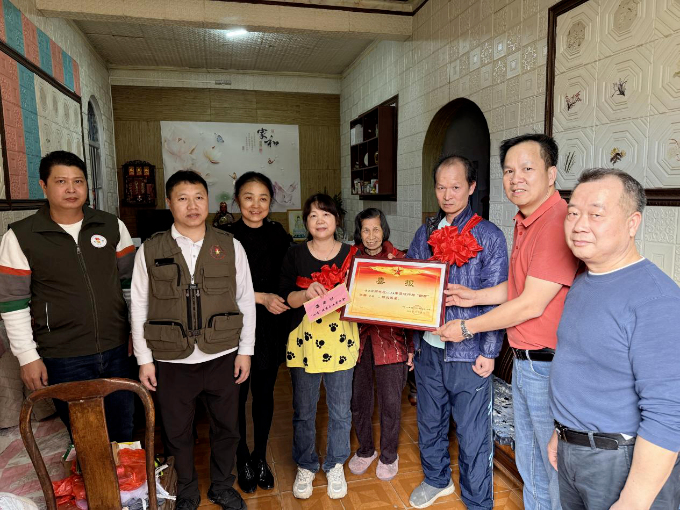 ▲慰问组为濠涌村方汉明家属送上“四有”优秀士兵喜报