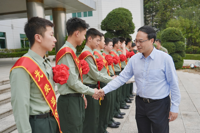 黎宇彬、刘锦荣等领导与退役士兵们逐一握手,向他们表示亲切的问候。