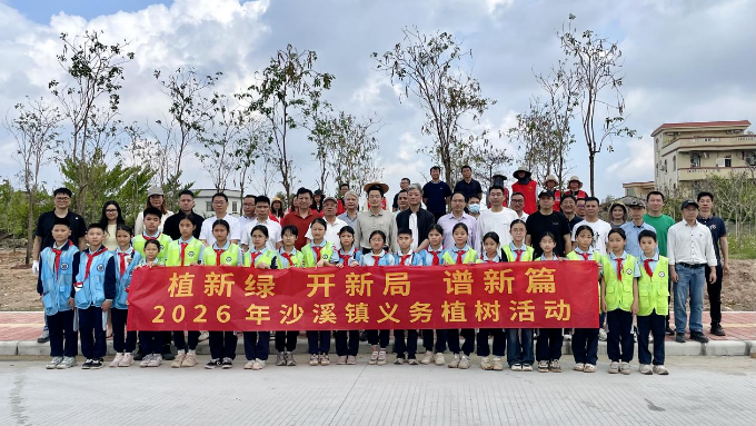 沙溪春正好,植绿正当时。为深入学习贯彻习近平生态文明思想,全面落实省、市绿美生态建设工作要求,扎实推进绿美沙溪建设,3月17日,沙溪镇积极响应全省五级林长联动号召,举办“植新绿 开新局 谱新篇”2026年义务植树活动,镇留家领导班子成员、部门负责人、相关村组代表、企业家代表、少先队员代表约70人参加活动,大家以实际行动厚植沙溪绿色家底,为“十五五”开局之年绿美沙溪建设注入强劲动力,拉开了全镇全年植绿护绿工作的序幕。