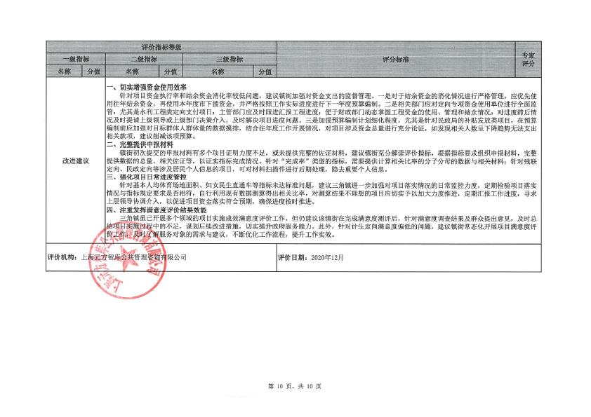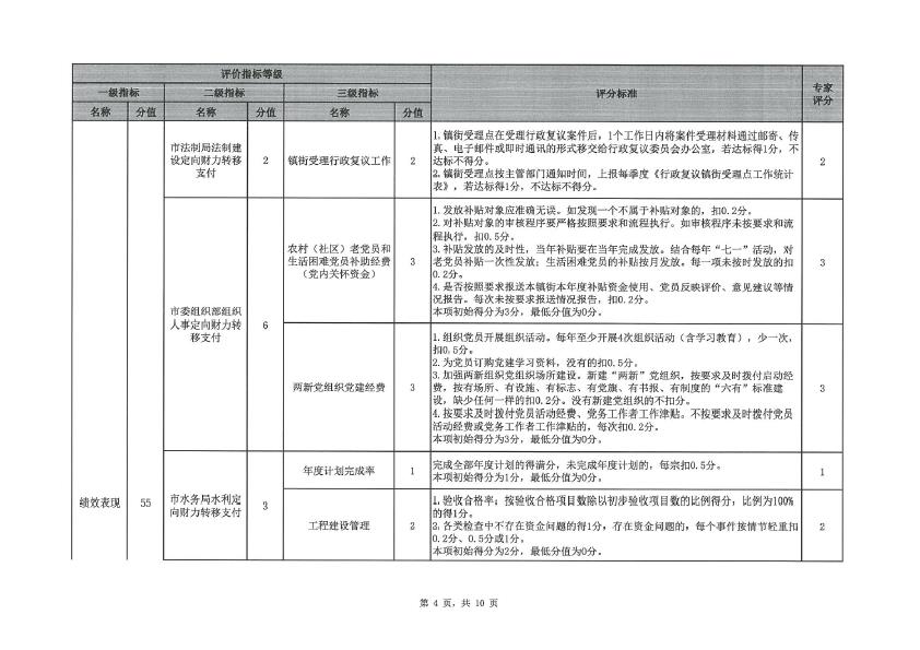三角镇2019年度定向财力转移支付资金绩效评价评分意见表