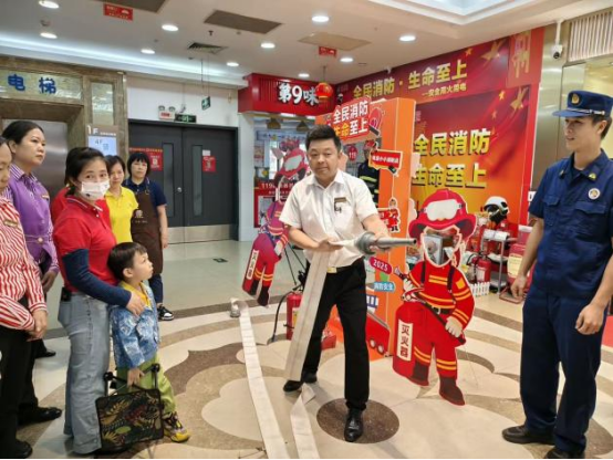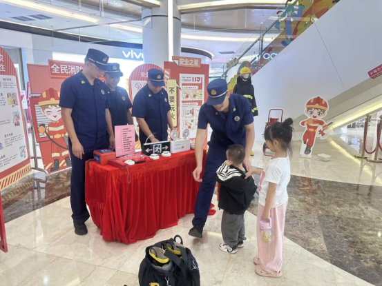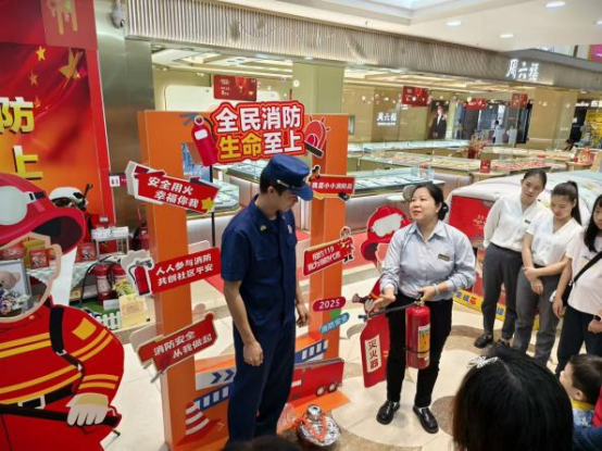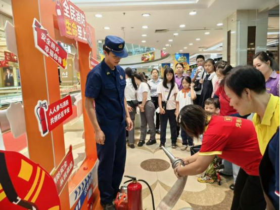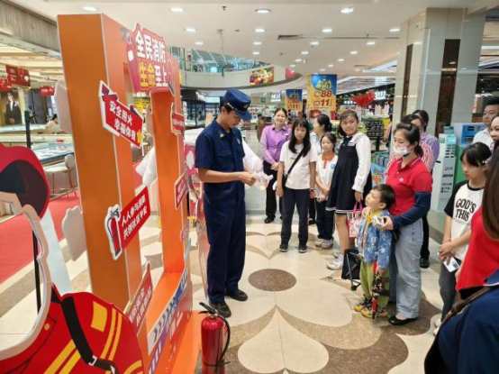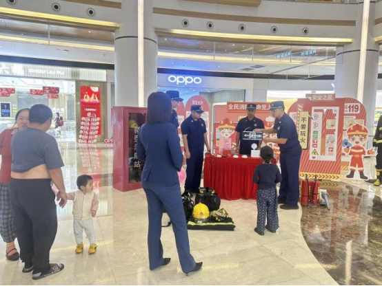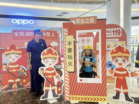 两处消防微型体验点分别位于三角镇紫荆广场及三角镇壹加壹购物广场,人流密集、贴近市民日常生活。体验点内功能明晰,设置有消防器材展示、互动体验、宣传培训以及火灾警示教育等多个区域,通过视觉、听觉与触觉相结合的方式,让参与者在沉浸式互动中掌握逃生自救、防灾减灾等应急救援知识,真正实现“消防安全知识生活化”。