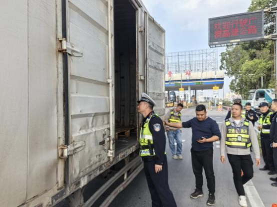 2月4日,镇党委委员、公安分局局长魏健怡带队,联合城建局、交警大队分别在三角镇广澳高速广州出口、福泽路开展联合执法检查。重点针对“两客一危一重”车辆,严查“三超一疲劳”、非法营运、非法运输危化品、无牌无证驾驶、酒驾、毒驾等严重交通违法行为。