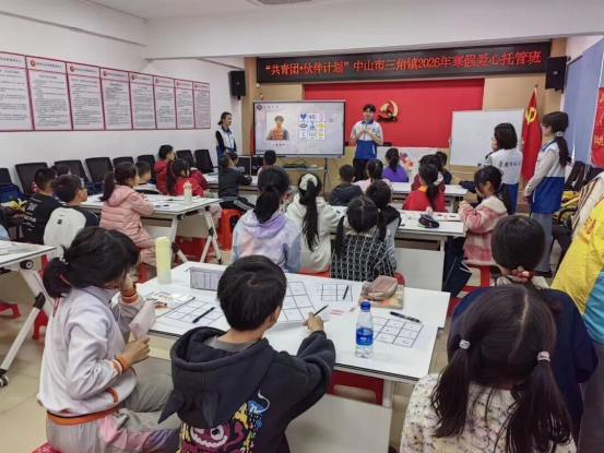 近日,在团市委的指导下,三角镇团委联合青年大学生“百千万工程”突击队结对对象——华南师范大学未来教育家“智育未来”实践团、福泽社区和大学生联谊会圆满举办为期7天的“共青团·伙伴计划”2026年寒假爱心托管班,服务30余名青少年度过一个安全而充实的多彩假期。
