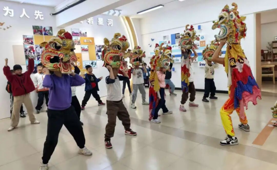 托管班特别邀请麒麟舞传承人吴丽琼老师来到现场,手把手教孩子们学习麒麟舞的基本动作,从摆头、摇尾的基础姿态,到踏步、转身的连贯动作,孩子们认真模仿、积极尝试,沉浸式感受着家乡非遗文化的魅力。