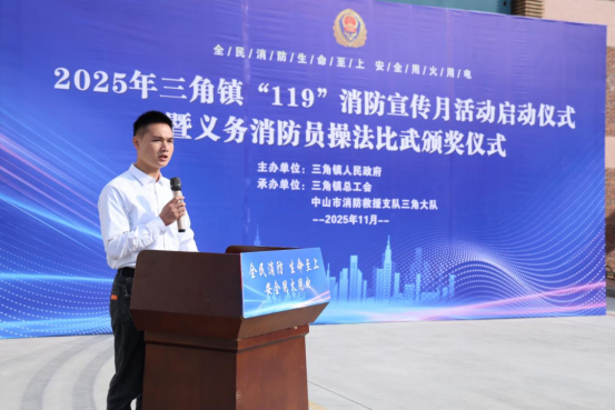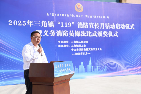 为进一步提升社会面火灾防控能力,切实加强消防安全宣传教育培训工作,11月12日,三角镇2025年“119消防宣传月”启动仪式举行。镇人大主席郑凯宏,党委委员、副镇长乔梁,各相关部门、村(社区)、消防安全重点企业负责人及义务消防队成员参加。