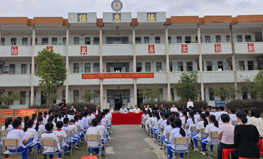 座谈会后,调研组前往江东镇红砂学校开展“爱心助学”活动。中山市商务局党组书记、局长张峻峰,中山市商务局党组成员、副局长高晓波,江东镇党委书记谢振权等出席活动,共同见证爱心传递。本次中山市商务局携手中山市外商投资企业协会、中山市电动车行业协会、中山市国际货运代理协会三家爱心行业商协会,向红砂学校捐赠了十台空调,用于改善教室物理环境,直接惠及在校约400名师生。