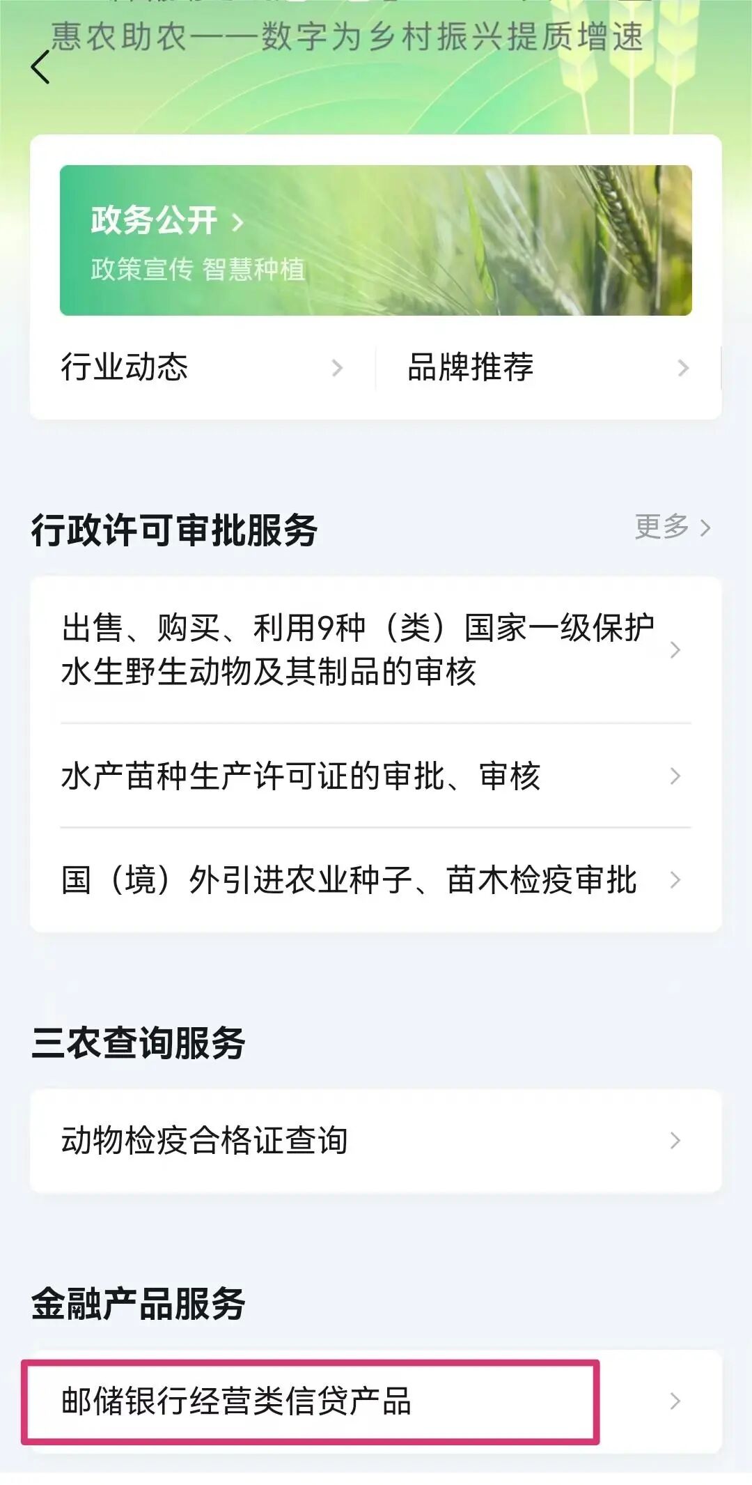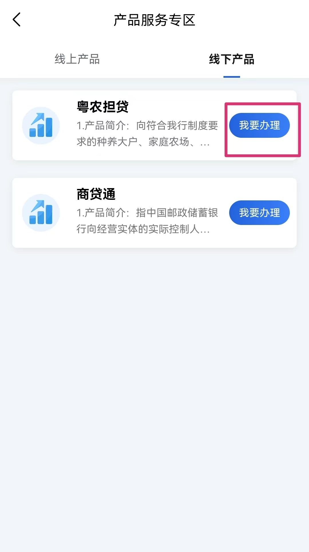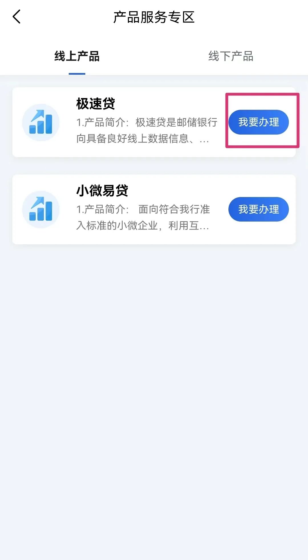 近日,为适应新发展阶段企业发展需要和互联网金融发展趋势,为个体工商户及小微企业主提供更加高效、便捷的融资服务,粤商通新上线4个金融服务产品事项,带来从指尖到心尖的融资新体验。 您可以扫码下载并打开粤商通APP,在首页【服务】点击【特色专区】,进入【三农服务专区】,选择对应的【邮储银行经营类信贷产品】,即可开始办理。 具体申请流程:信息申请→提交→银行对接→发放贷款。 01 产品简介 极速贷是邮储银行向具备良好线上数据信息和优质信用状况的客户提供的经营性贷款。 02 产品要素 额度:抵押模式最高1000万元,信用模式最高50万元。 利率:抵押模式最低LPR,信用模式最低LPR+50BP。 期限:抵押模式单笔贷款期限最长10年,信用模式单笔贷款期限最长3年。 还款方式:等额本息;按月付息到期一次性还本;一次性还本付息。 03 申请程序 通过邮政银行微信银行端、邮储银行手机银行端或咨询客户所在地邮储银行网点开展业务申请。 01 产品简介 面向符合有关银行准入标准的小微企业,利用互联网、大数据技术并结合企业在银行结算流水、纳税信息、增值税发票信息、政务信息、房产信息、进出口数据信息、企业订单/中标信息、电商类平台企业经营数据、零售商圈企业经营数据、核心企业/平台进销数据、企业ETC通行费数据、应收账款数据等一种或几种信息,发放的网络自助流动资金贷款。 02 产品要素 授信金额:信用模式:最高500万元;抵质押或保证或组合模式:最高1000万元。 授信期限:信用模式单笔贷款最长期限1年,抵质押或保证或组合模式单笔贷款最长期限3年。 利率:最低LPR。 还款方式:按月还息;到期一次性还本还款法;等额本息还款法。 03 申请程序 线上申请,通过网上银行、手机银行等银行电子渠道或合作机构申贷入口完成身份认证后申请办理业务。 01 产品简介 向符合相关银行制度要求的种养大户、家庭农场、农民专业合作社、农业社会化服务组织、小微农业社会化服务组织、小微农业企业等新型农业适度规模经营主体发放的,用于满足借款人生产经营资金需求,以经过银行准入的担保公司担保为主要担保方式的贷款业务。 02 产品要素 额度:最高300万元。 利率:最低利率为LRP+40BP。 期限:贷款期限一般不超过3年。 还款方式:等额本息;阶段性等额本息;按月付息到期一次性还本;按周期结息按还本计划表还本。 03 申请程序 通过邮储银行手机银行端或咨询客户所在地邮储银行网点开展业务申请。 01 产品简介 中国邮政储蓄银行向经营实体控制人发放的、用于满足其生产经营活动资金需求的贷款。 02 产品要素 贷款期限:额度有效期5年,单笔支用最长5年。 贷款额度:1000万元。 还款方式:等额本息;阶段性等额本息还款法;按周期结息、到期一次性还本法;一次性还本付息法等。 担保方式:抵质押、保证、信用等。 03 申请程序 客户通过邮储银行手机银行端或咨询客户所在邮储银行网点开展业务申请。