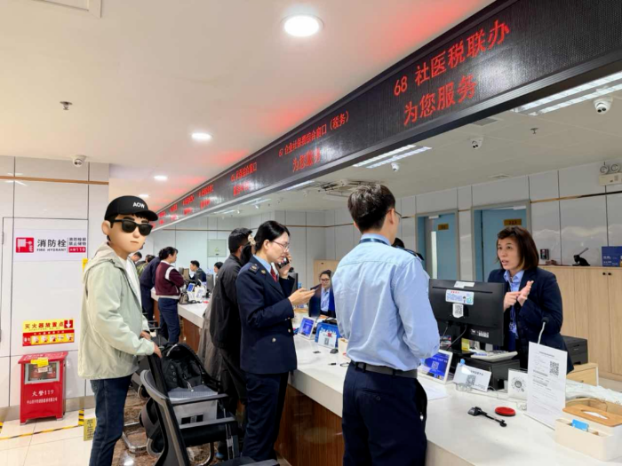 因语言沟通和政策理解存在双重障碍,外教对业务咨询无从下手。“中易办”服务专员接到诉求后,立即对接人社窗口,精准转达其需求。迅速启动“靠前服务”机制,联合人社、税务部门组建答疑小组,为其提供“一站式”解答服务。现场,人社部门工作人员详细讲解灵活就业参保适用规则,重点解读外籍人士终止劳动关系后的参保资格、办理流程等核心问题;税务部门工作人员同步说明社保补缴流程及注意事项,两大部门密切配合,一次性讲透政策、理清流程、列明材料,同时主动询问外教是否存在其他疑问,全程提供贴心帮办指导,让这位英籍外教感受到了政务服务的温度与效率。